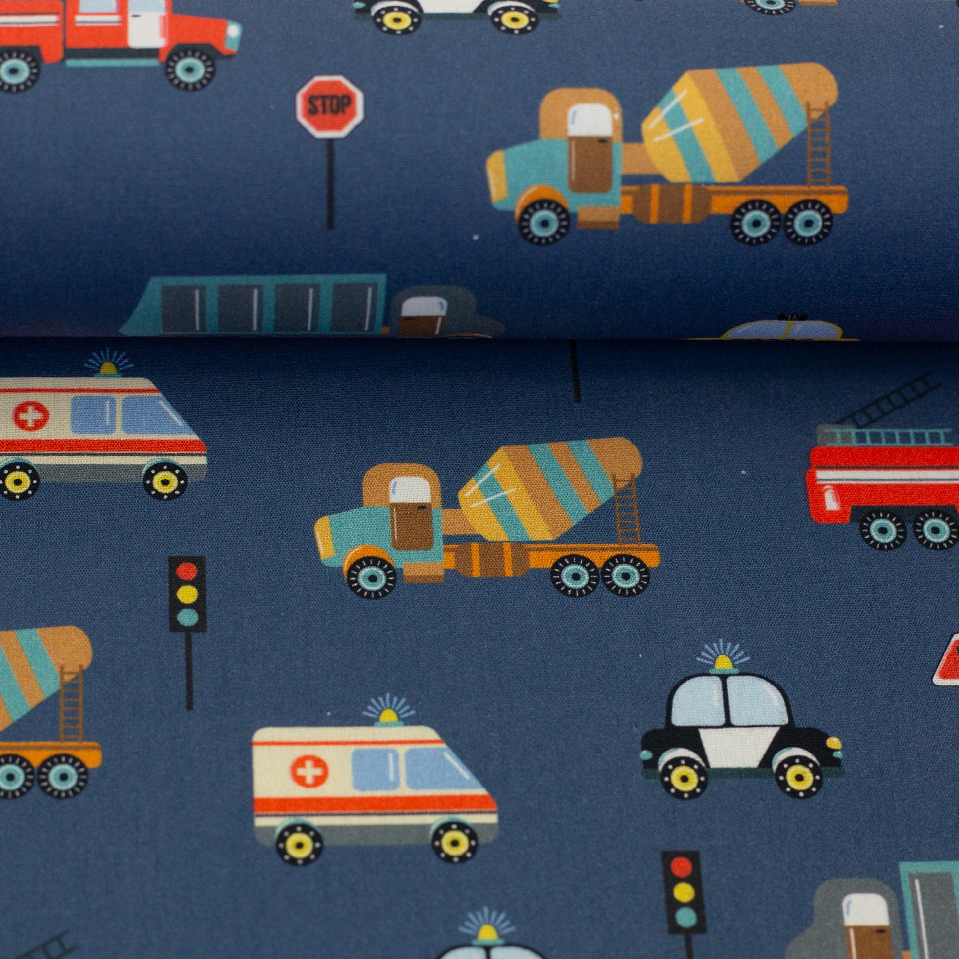 Interesse an "Baumwolle Bill Baufahrzeuge Swafing dunkelblau"? Wir sind für dich da!